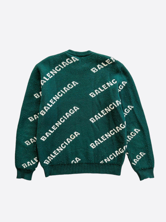 Balenciaga Green & White All Over Logo Knit Sweater
