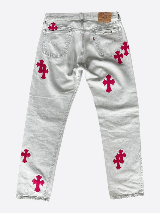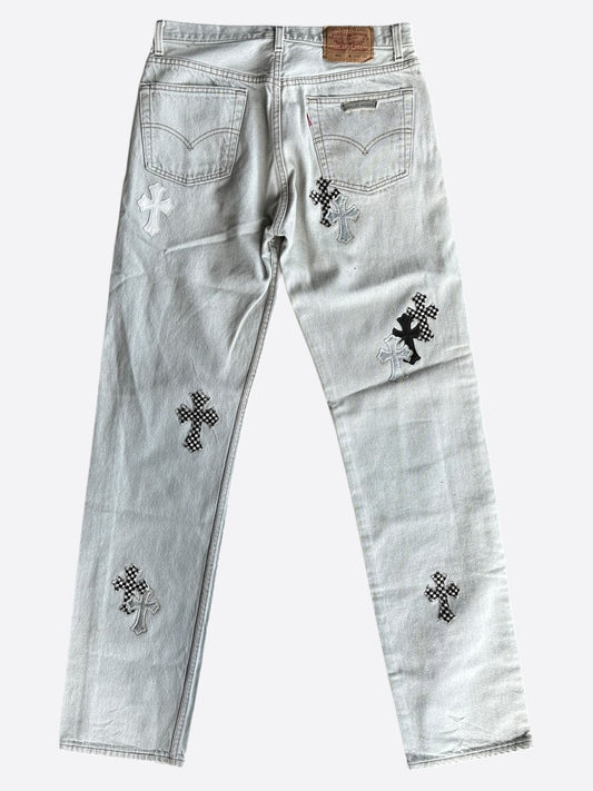 Chrome Hearts Levis White & Mixed Cross Patch Jeans