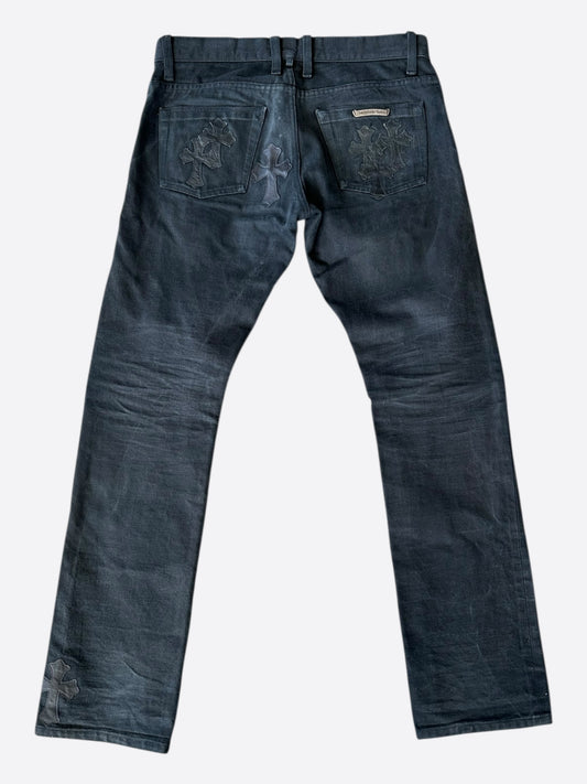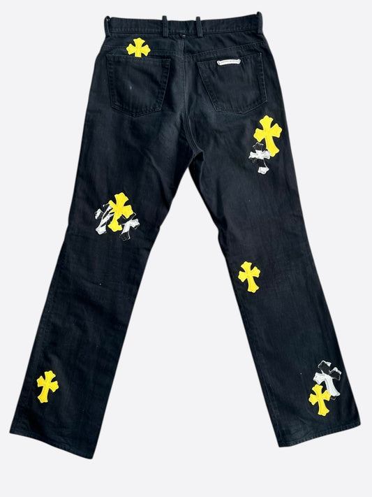 Chrome Hearts Black Cow & Yellow Cross Patch Fleur Jeans