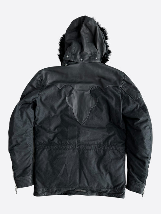 Chrome Hearts Black Leather Fleur Parka Jacket