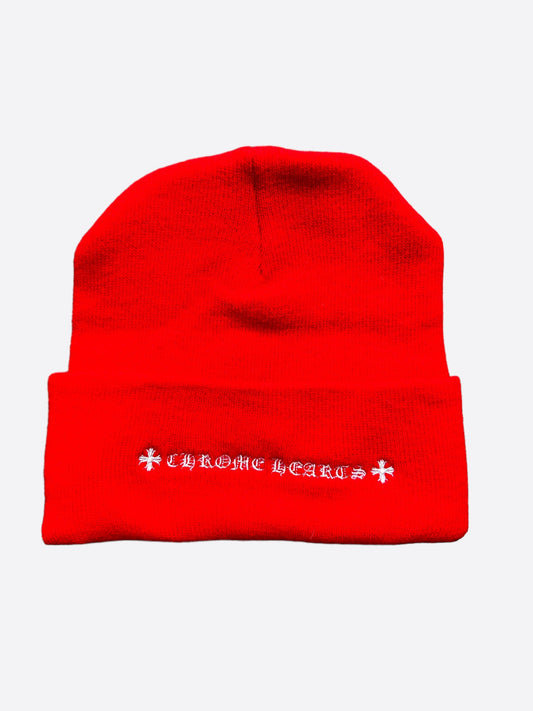 Chrome Hearts Red & White Triple Cross Embroidered Quarter Zip Sweater