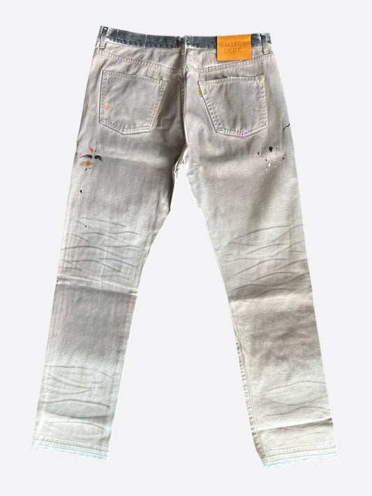 Gallery Dept Beige Paint Splatter Distressed Carpenter Pants