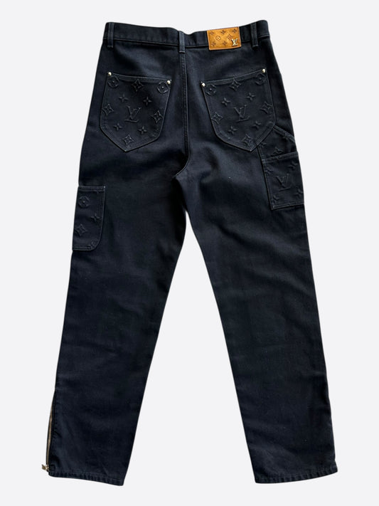 Amiri Vintage Indigo Black Sequin Patch Thrasher Jeans