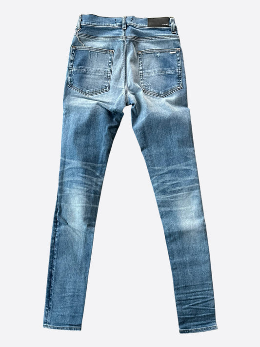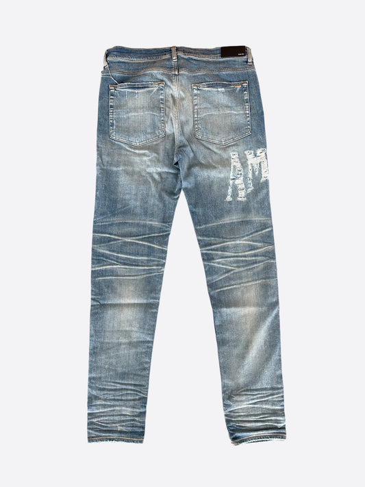 Amiri Clay Indigo Distressed Logo Jeans