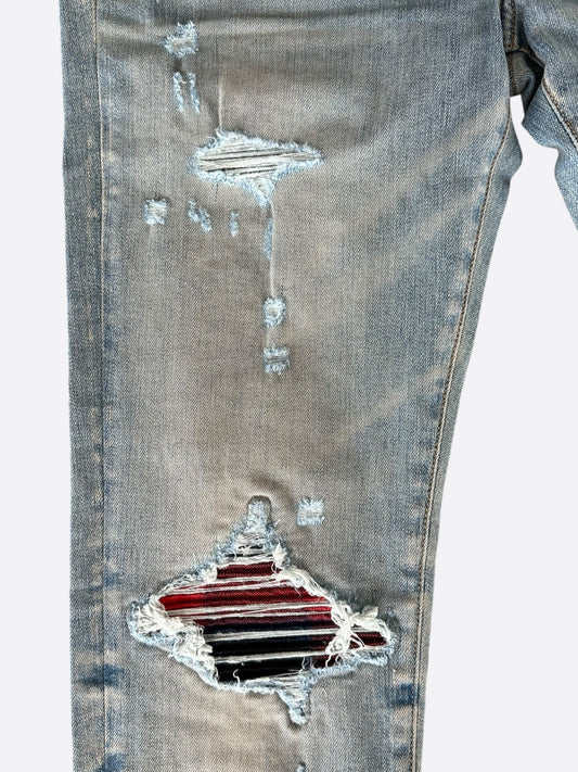 Amiri Clay Indigo Black & Red Plaid Patch MX1 Jeans