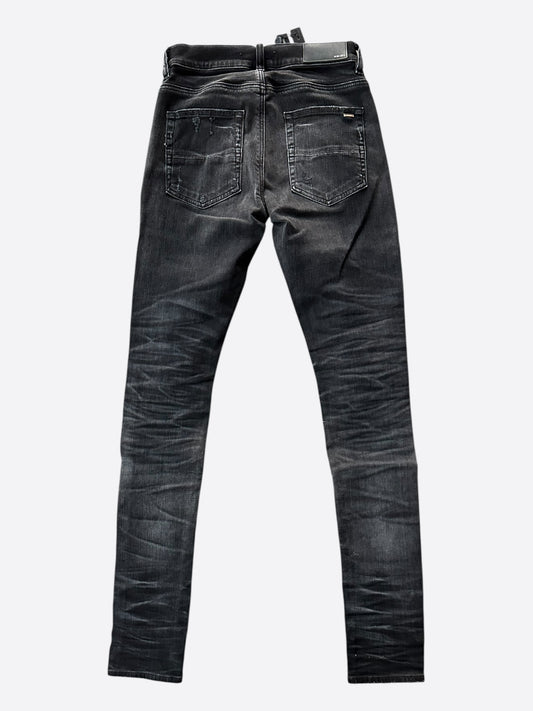 Amiri Faded Black Sequin Patch Thrasher Jeans