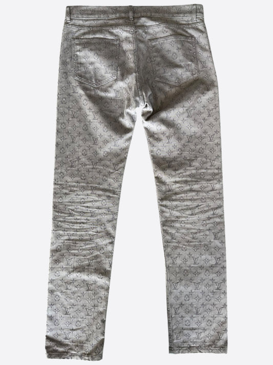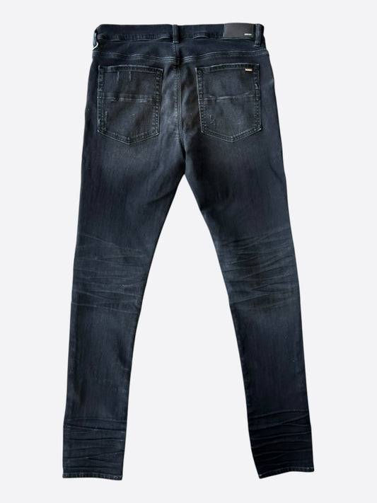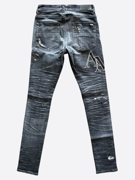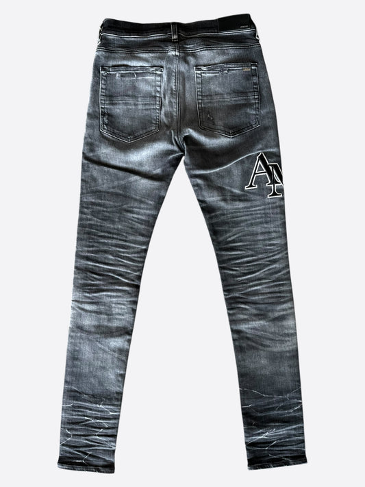 Amiri Storm Grey Distressed Staggered Logo Jeans
