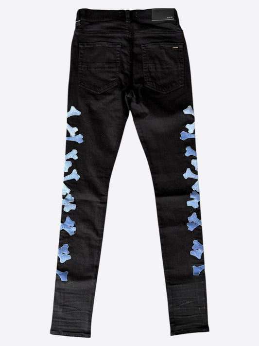 Amiri Black & Blue Gradient Bones Applique Distressed Jeans