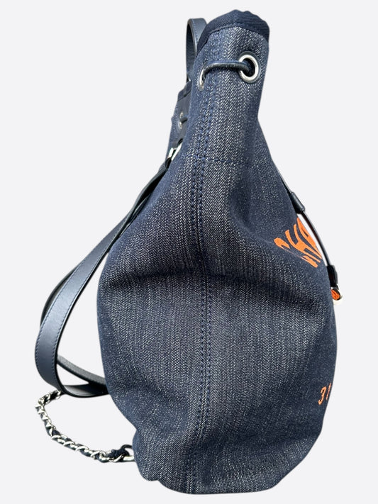 Chanel Blue & Orange Deauville Denim Drawstring Bag