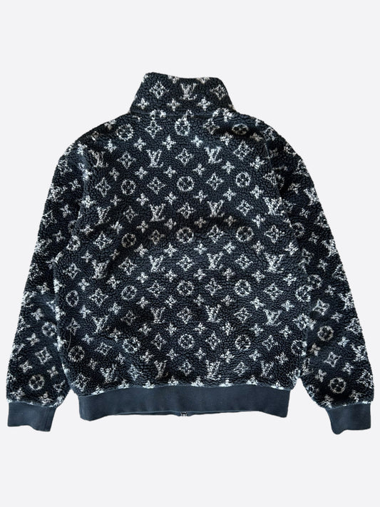 Louis Vuitton Black & Grey Monogram Fleece Zip Up Jacket