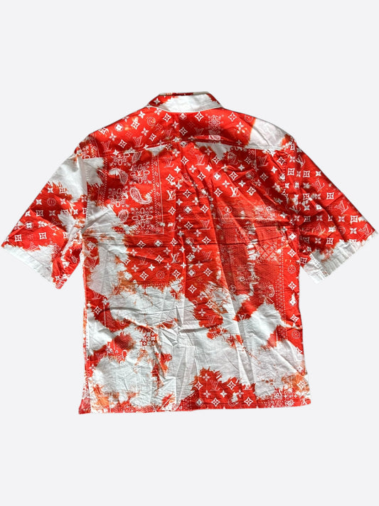 Louis Vuitton Red Bleached Bandana Monogram Button Up Shirt