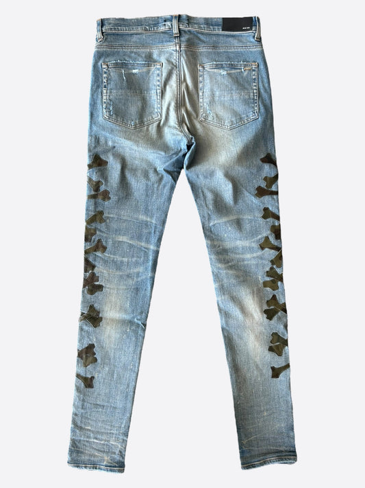 Amiri Blue & Camouflage Bones Applique Distressed Jeans