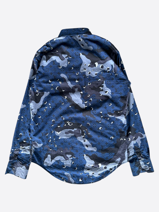 Louis Vuitton Blue Camouflage Monogram Button Up Shirt