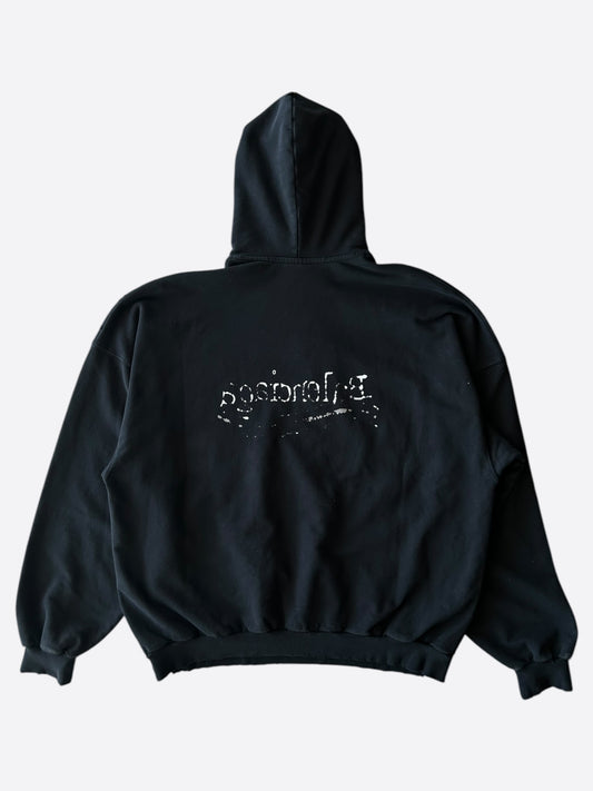 Balenciaga Grey & Red Metal Logo Distressed Hoodie