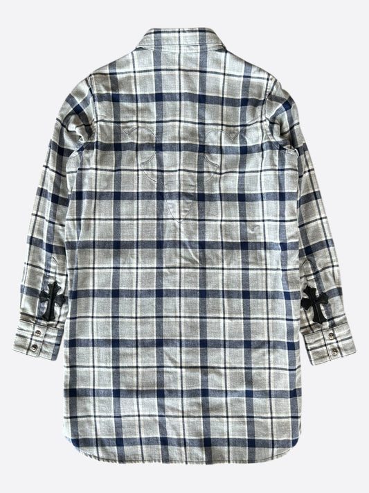 Chrome Hearts Grey & Blue Cross Patch Elongated Flannel