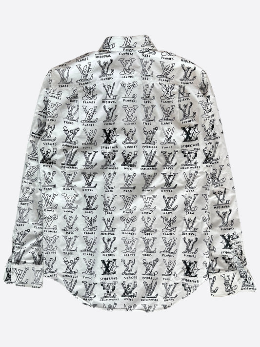Louis Vuitton White & Black Cartoon Button Up Shirt