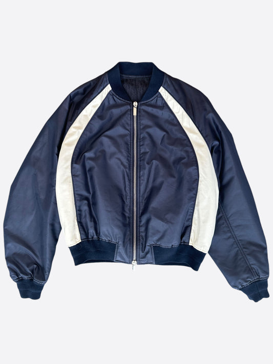 Dior Air Jordan Navy & White Embroidered Silk Bomber