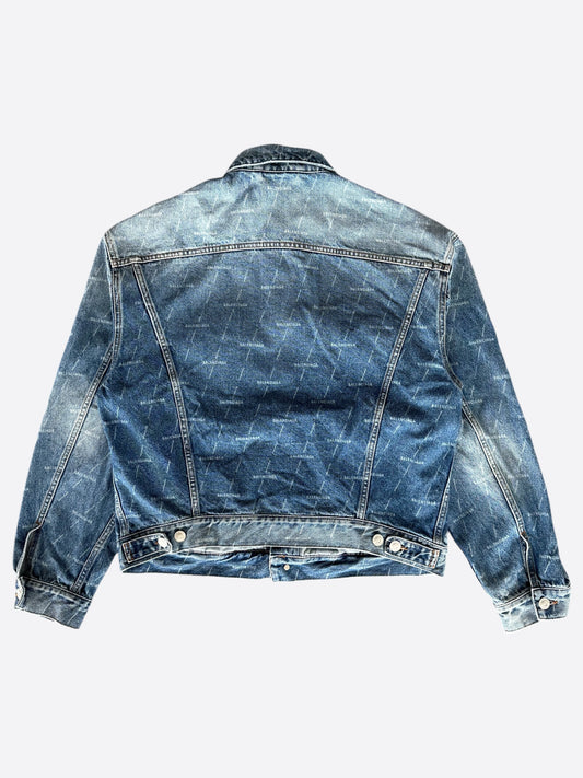 Balenciaga Blue & White All Over Print Denim Jacket