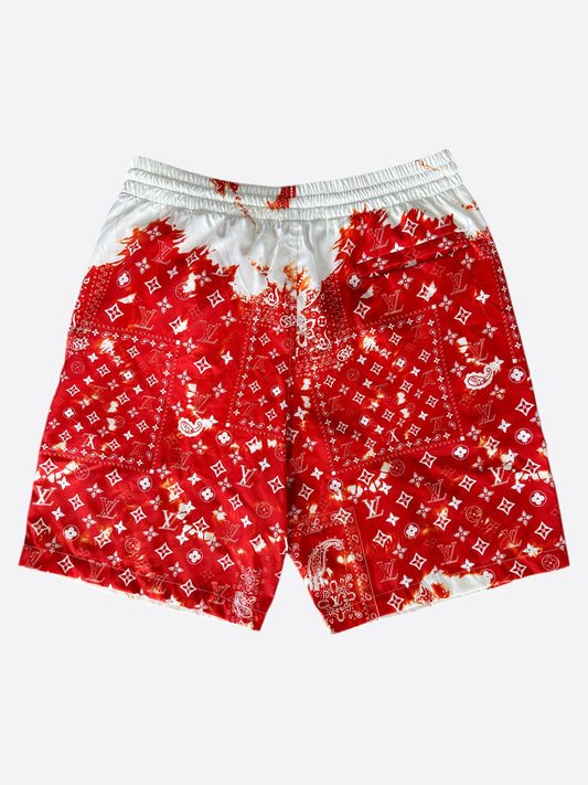 Louis Vuitton Red Bleached Bandana Monogram Swim Shorts