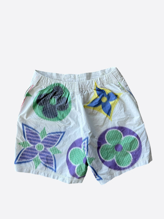 Louis Vuitton White Multicolor Flower Monogram Swimshorts
