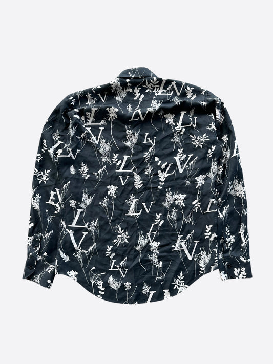 Louis Vuitton Navy & White Leaf Silk Button Up Shirt