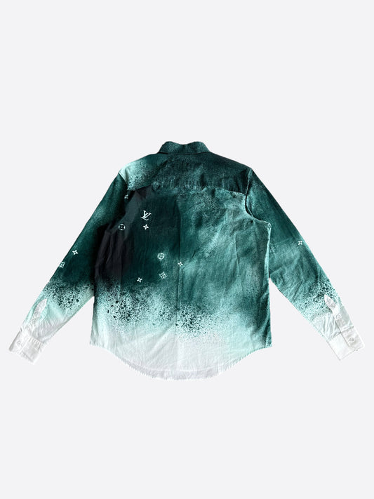 Louis Vuitton Green & White Monogram Button Up Shirt