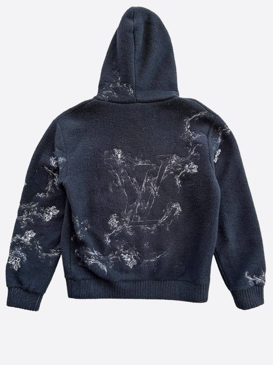 Louis Vuitton Navy & White Flower Embroidered Zip Up Hoodie