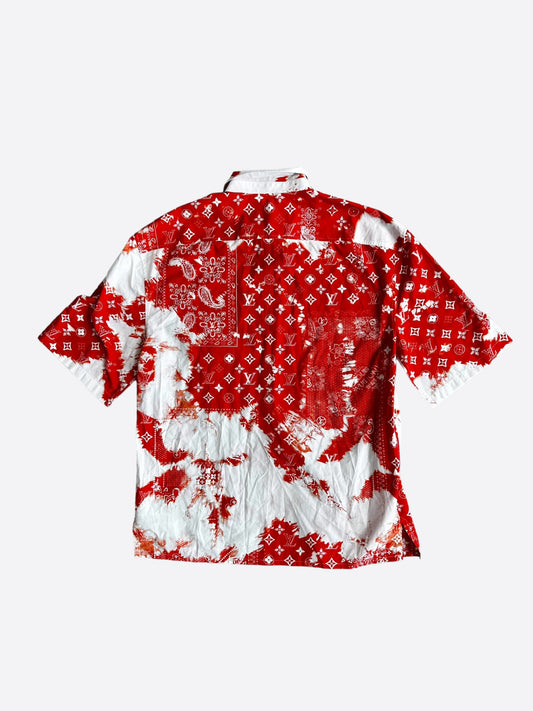 Louis Vuitton Orange Bleached Bandana Short Sleeve Button Up Shirt