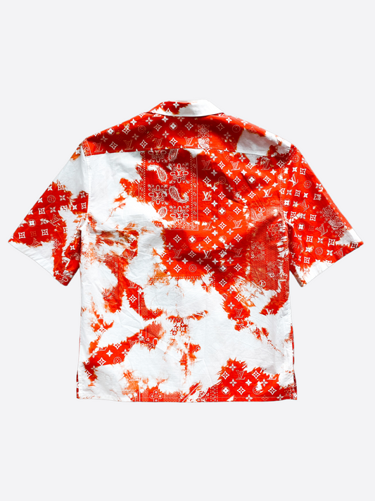 Louis Vuitton Orange Bandana Bleached Short Sleeve Button Up Shirt