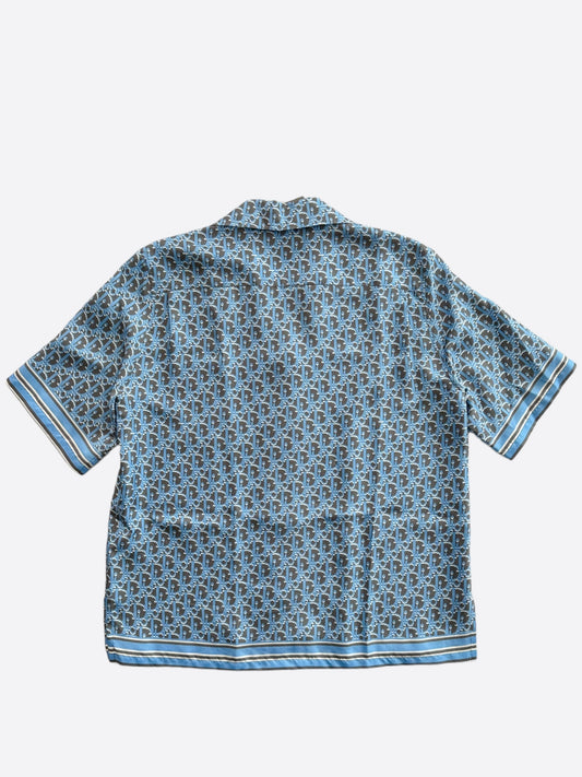 Dior Black & Blue Pixel Oblique Silk Button Up Shirt