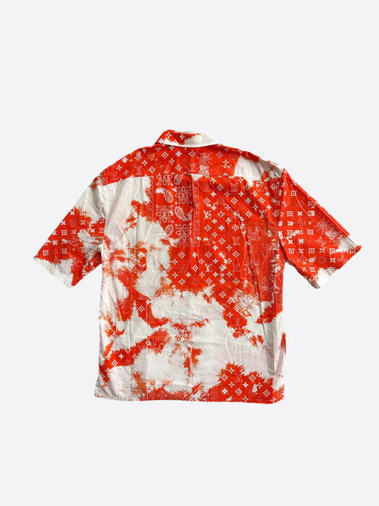 Louis Vuitton Orange Bandana Bleached Short Sleeve Button Up Shirt