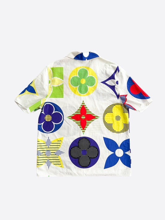 Louis Vuitton White Multicolor Flower Monogram Button Up Shirt
