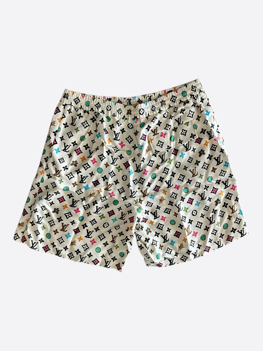 Louis Vuitton Tyler Cream Multicolor Monogram Silk Shorts