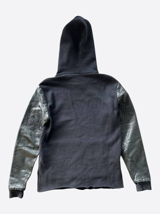 Chrome Hearts Black Leather Triple Cross Patch Hoodie