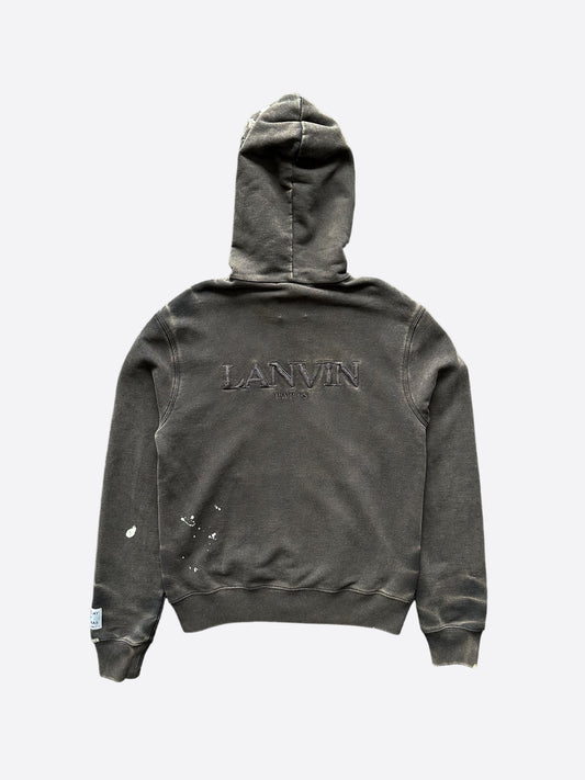 Gallery Dept Lanvin Washed Black Embroidered Paint Splatter Zip Up Hoodie