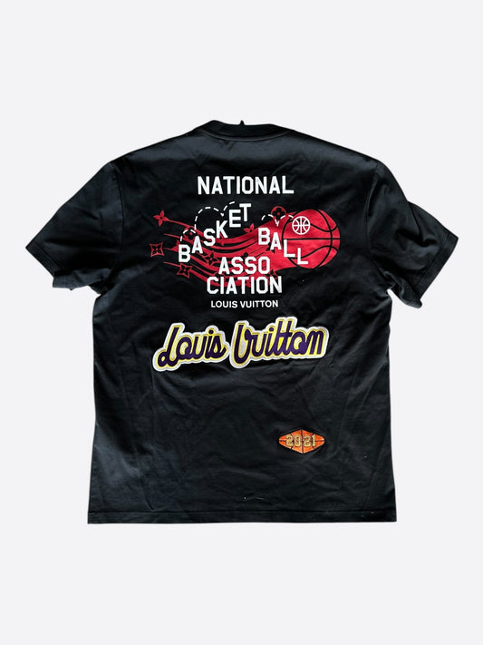 Louis Vuitton NBA Black Embroidered Patches T-Shirt