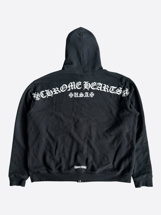 Chrome Hearts Chrome Zip Hoodie Black & White Double Cross Logo Thermal Zip Up Hoodie