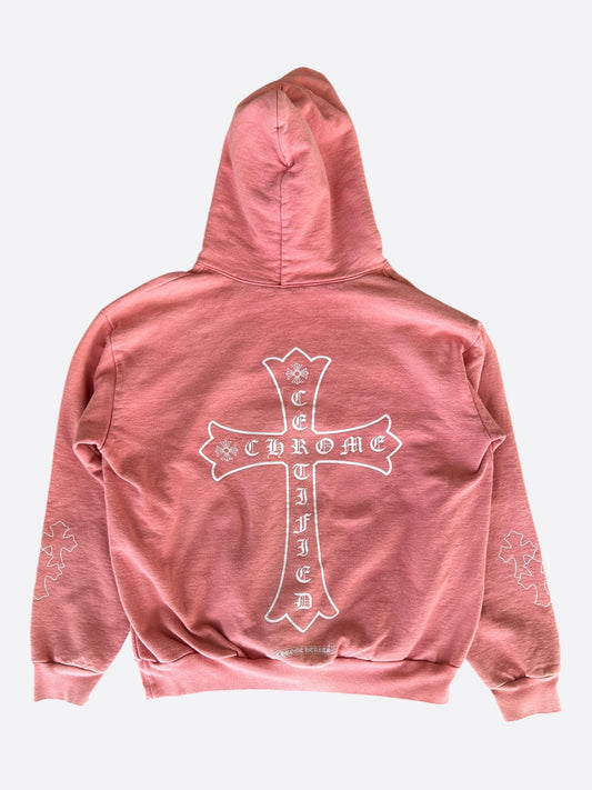 Chrome Hearts White & Red Rolling Stones Scroll Logo Zip Up Hoodie