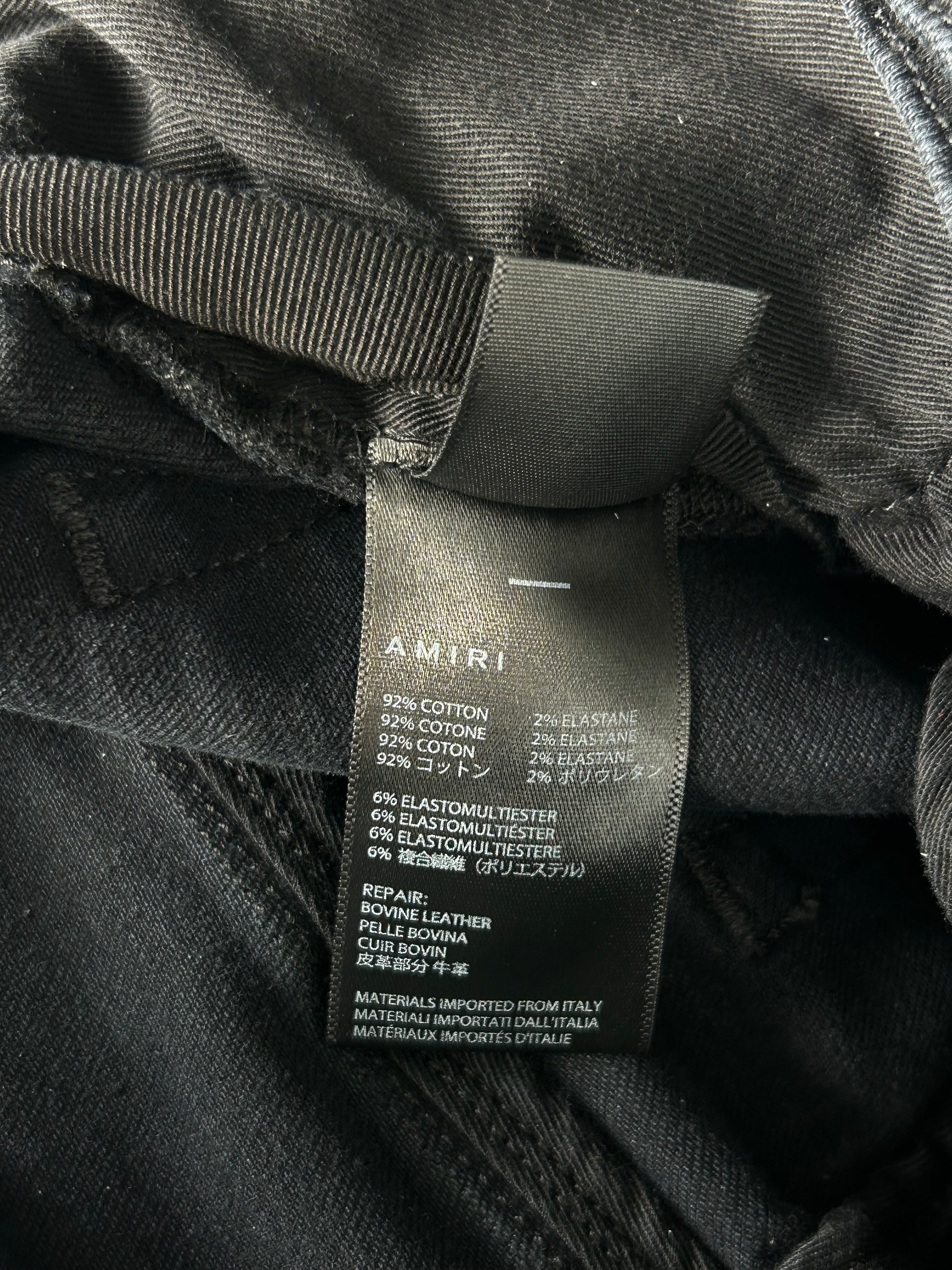 Amiri Aged Black Leopard Patch Thrasher Jeans