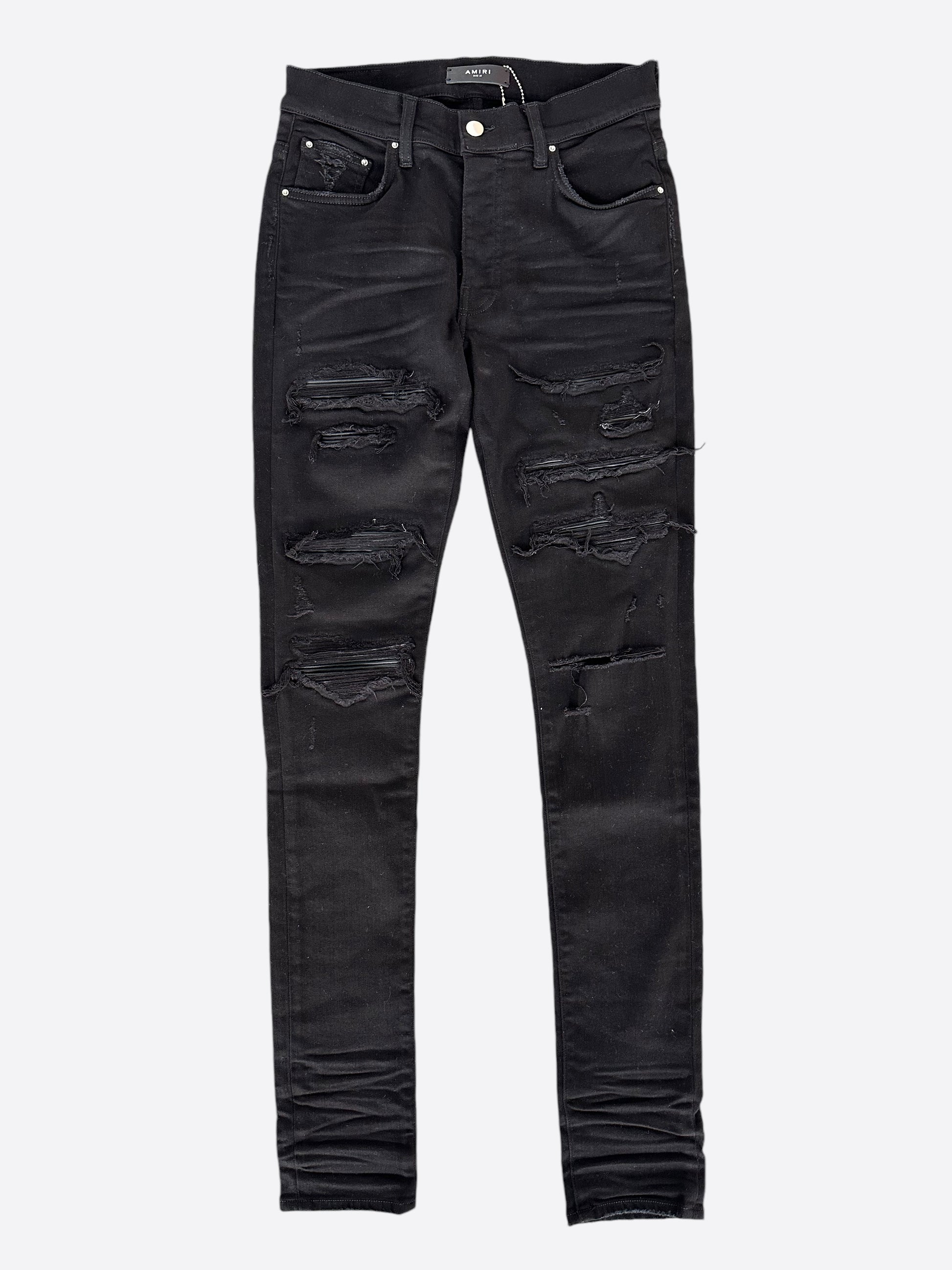 Amiri Black Leather Patch Thrasher Jeans