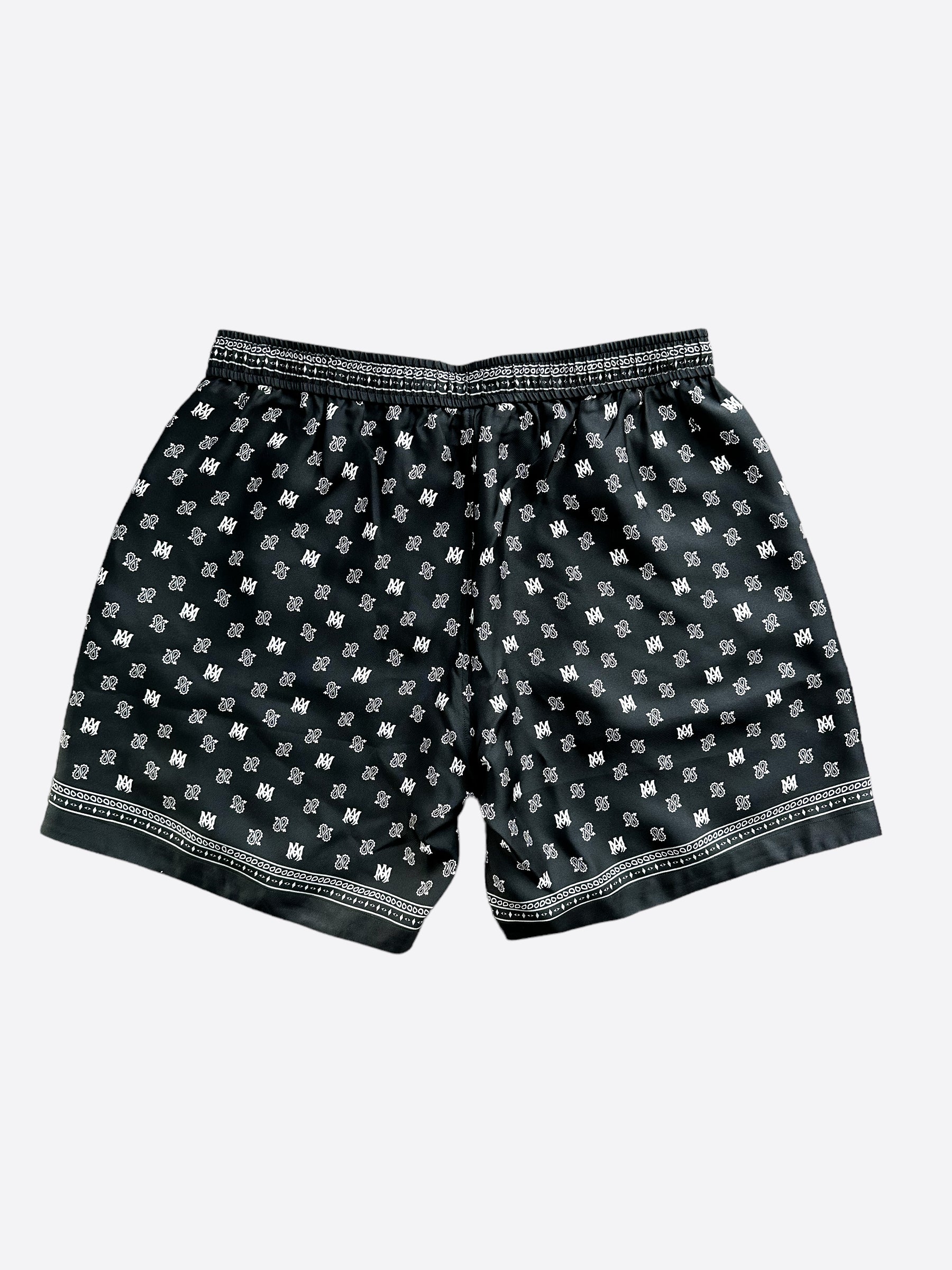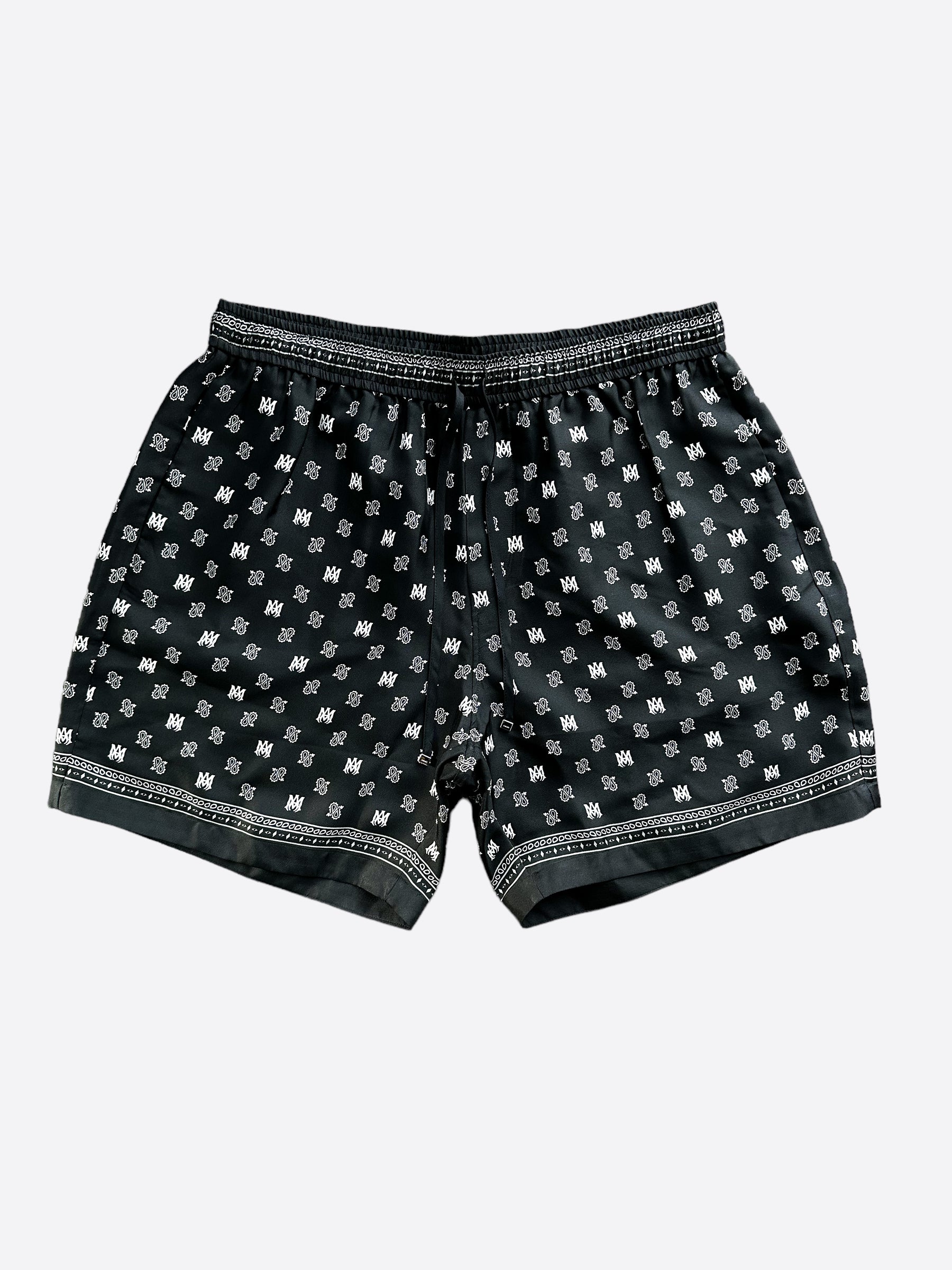 Amiri Black Paisley Logo Silk Shorts