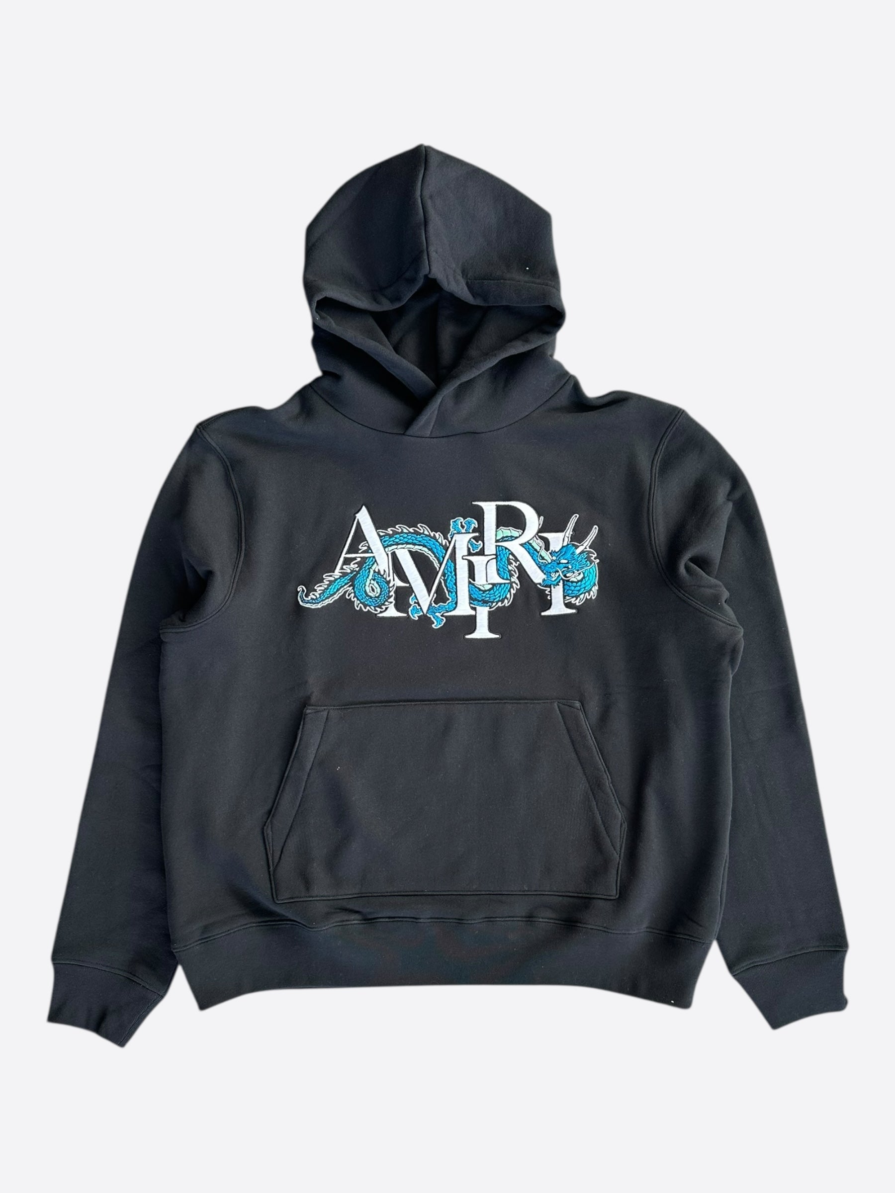 Blue & white dragon Amiri logo embroidered on chest