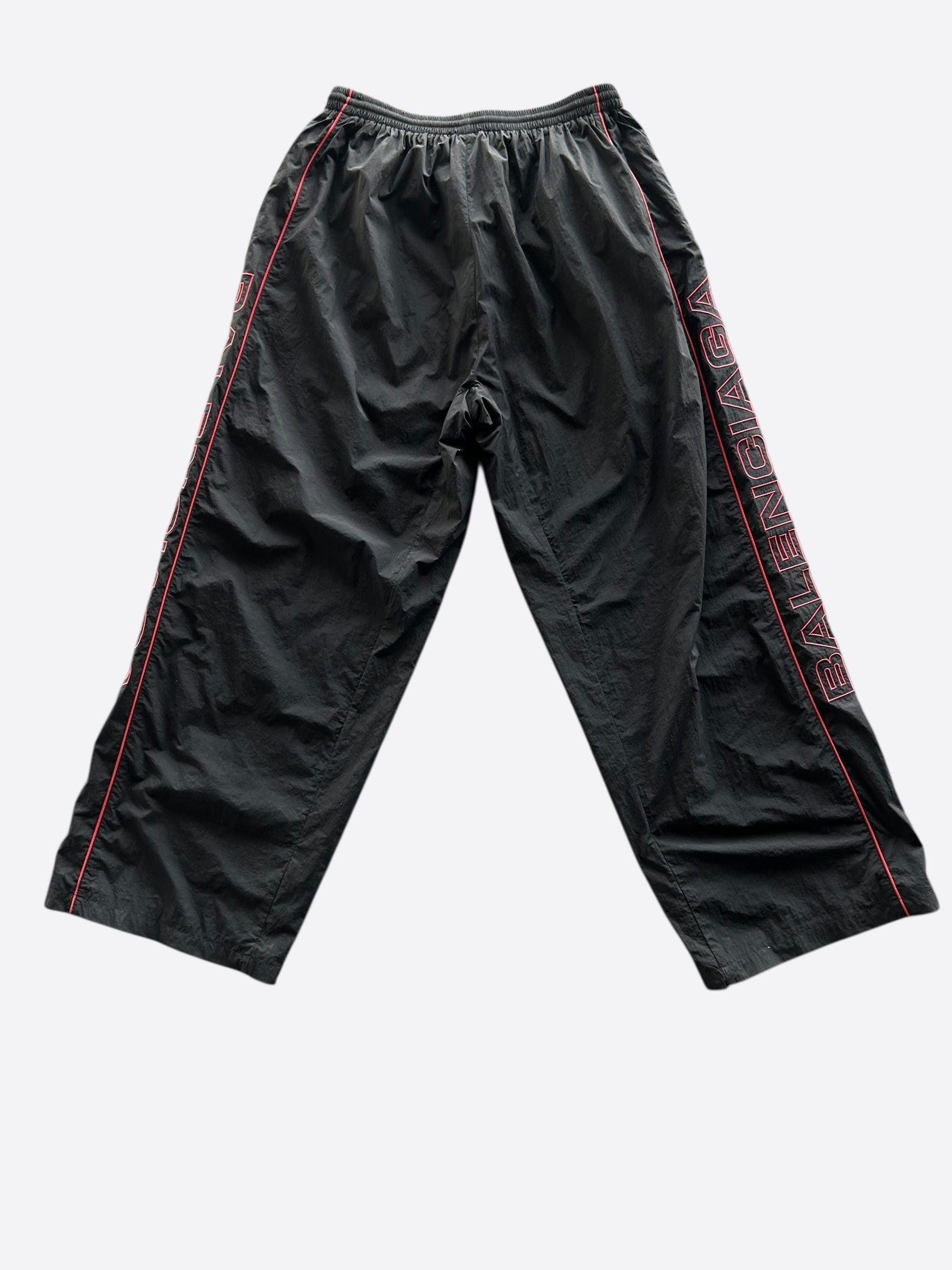 Balenciaga Black & Red Embroidered Logo Oversized Trackpants