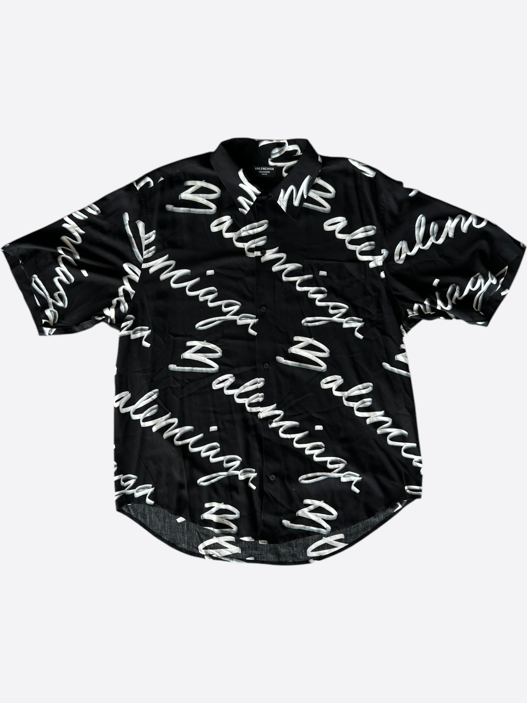 Balenciaga Black & White Script Button Up Shirt