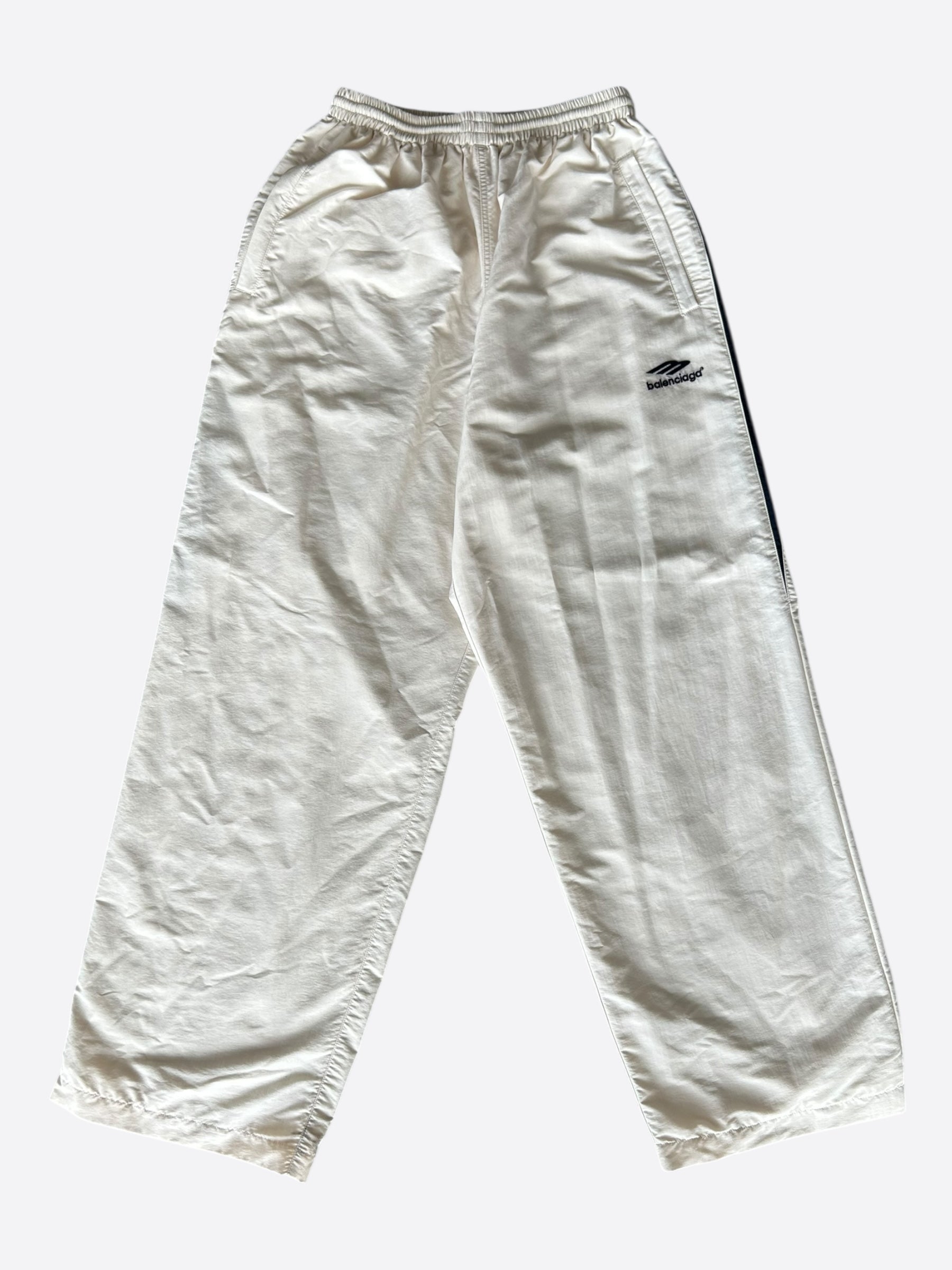 Balenciaga White & Black Embroidered Logo Trackpants