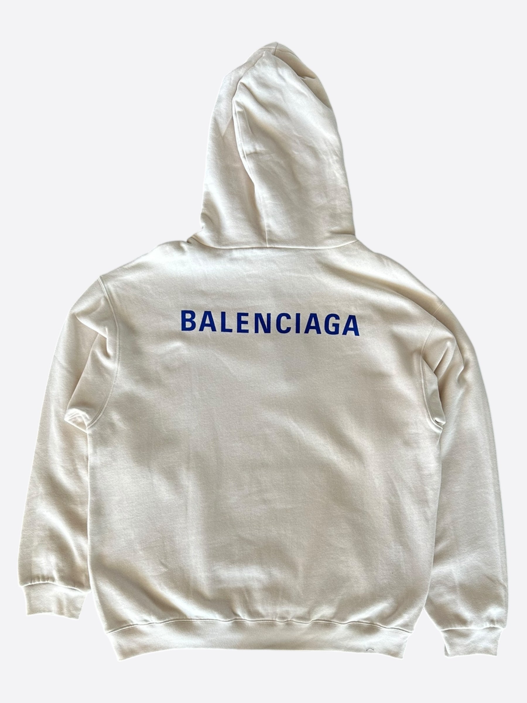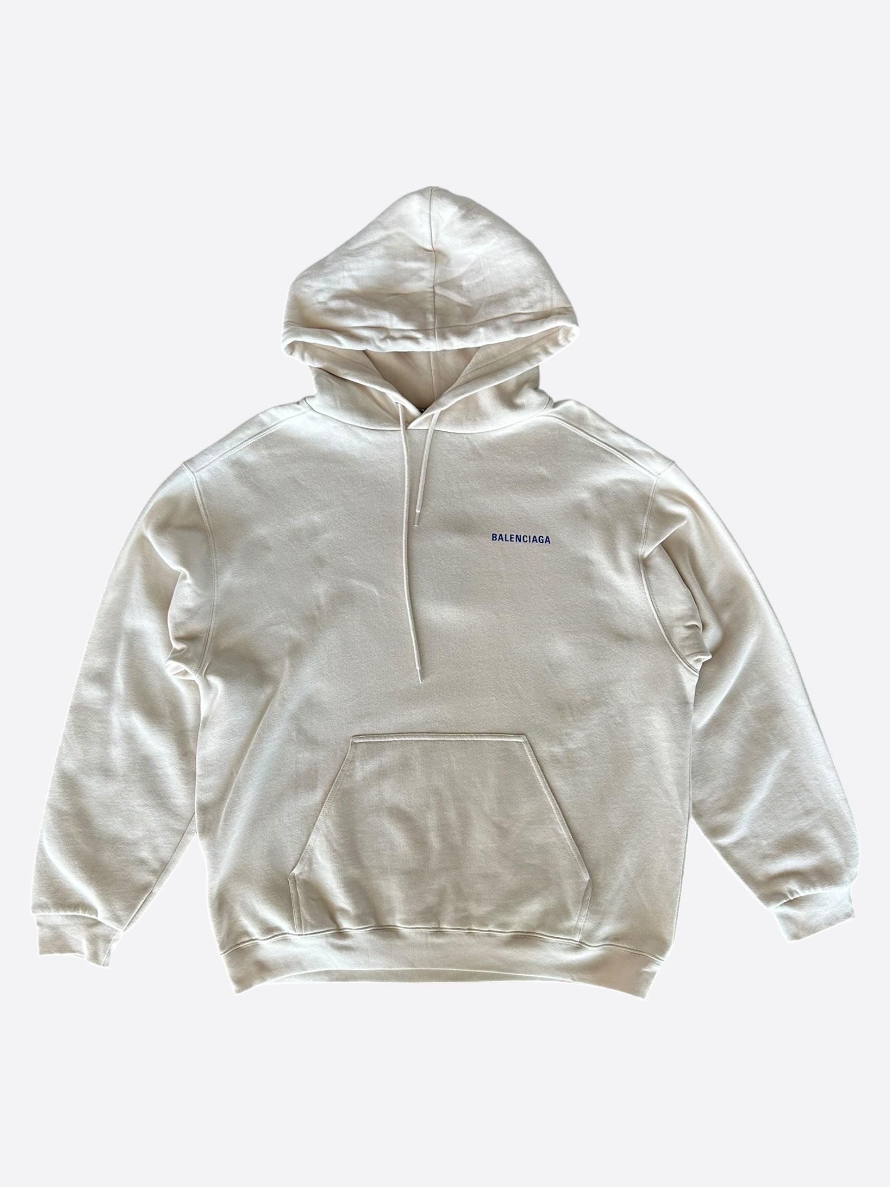 Balenciaga White & Blue Logo Hoodie