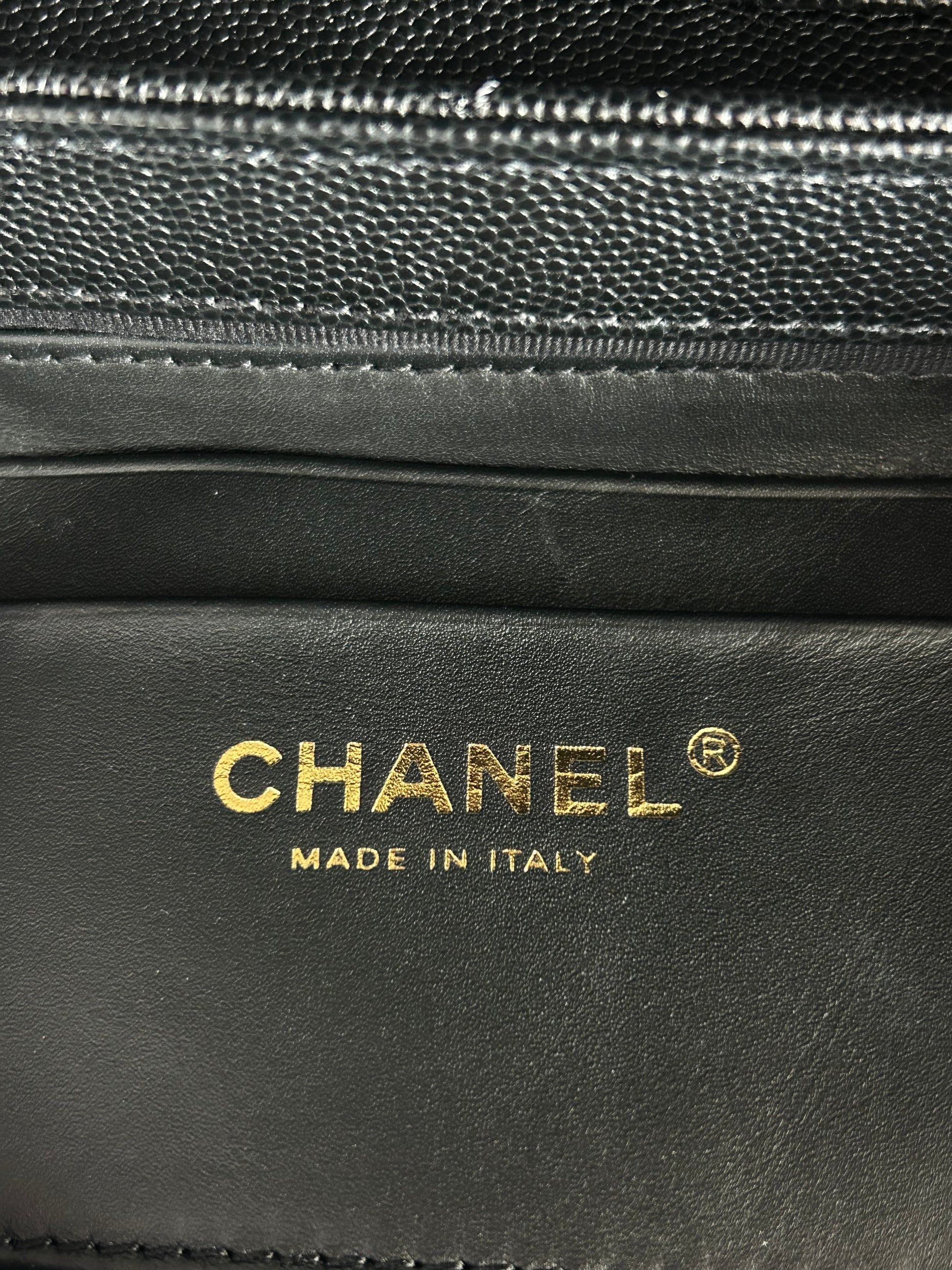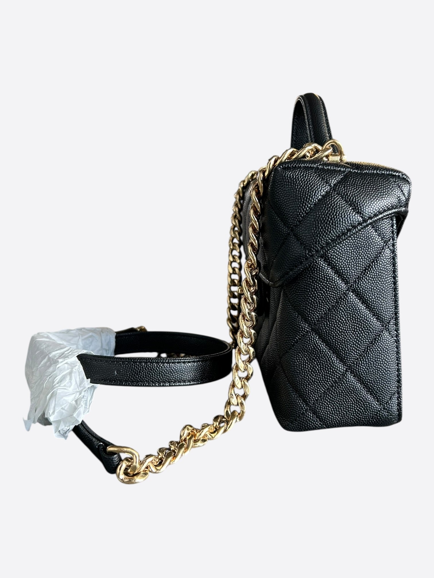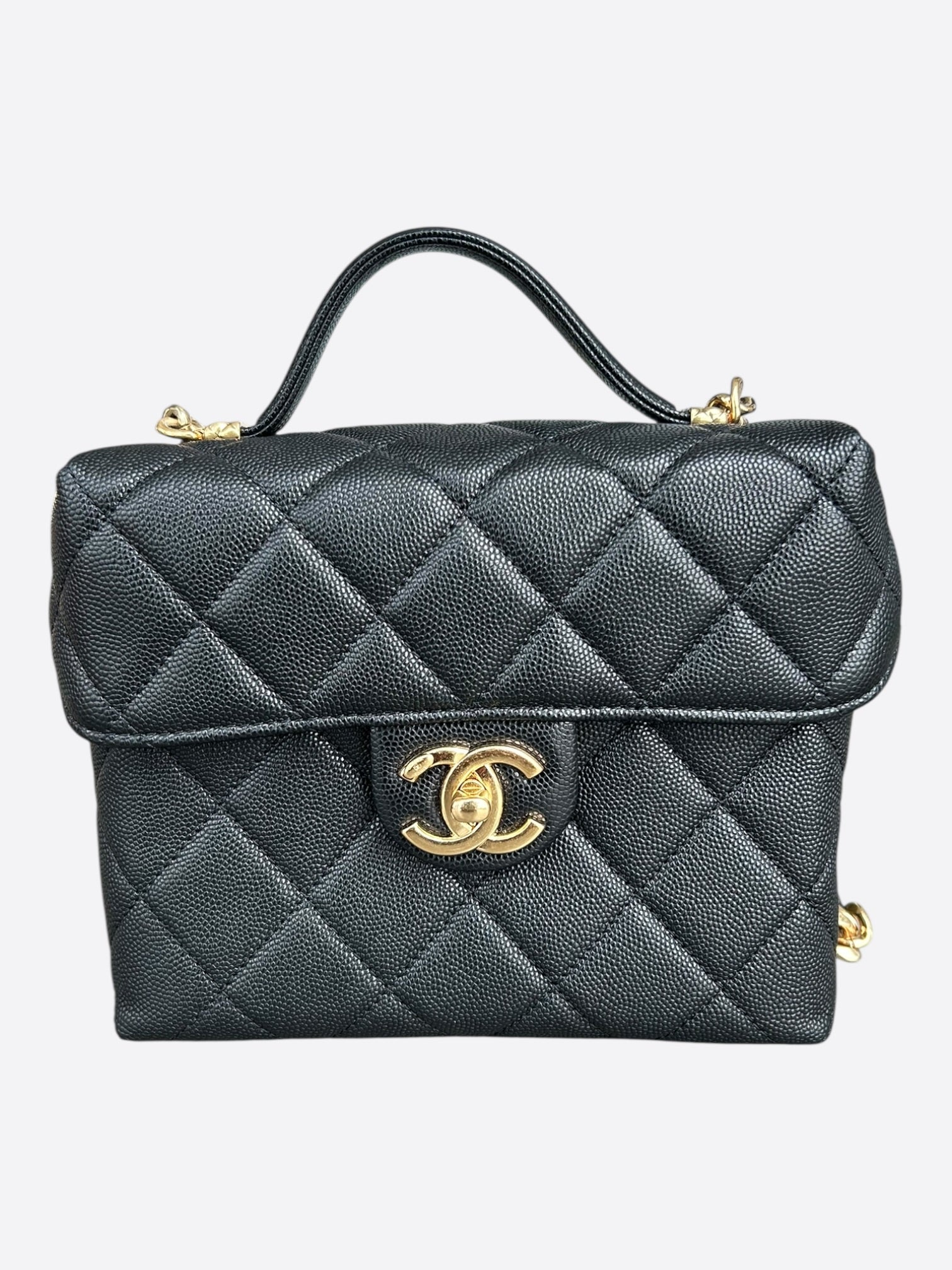 Chanel Black Caviar Quilted Handy Box Vanity Bag