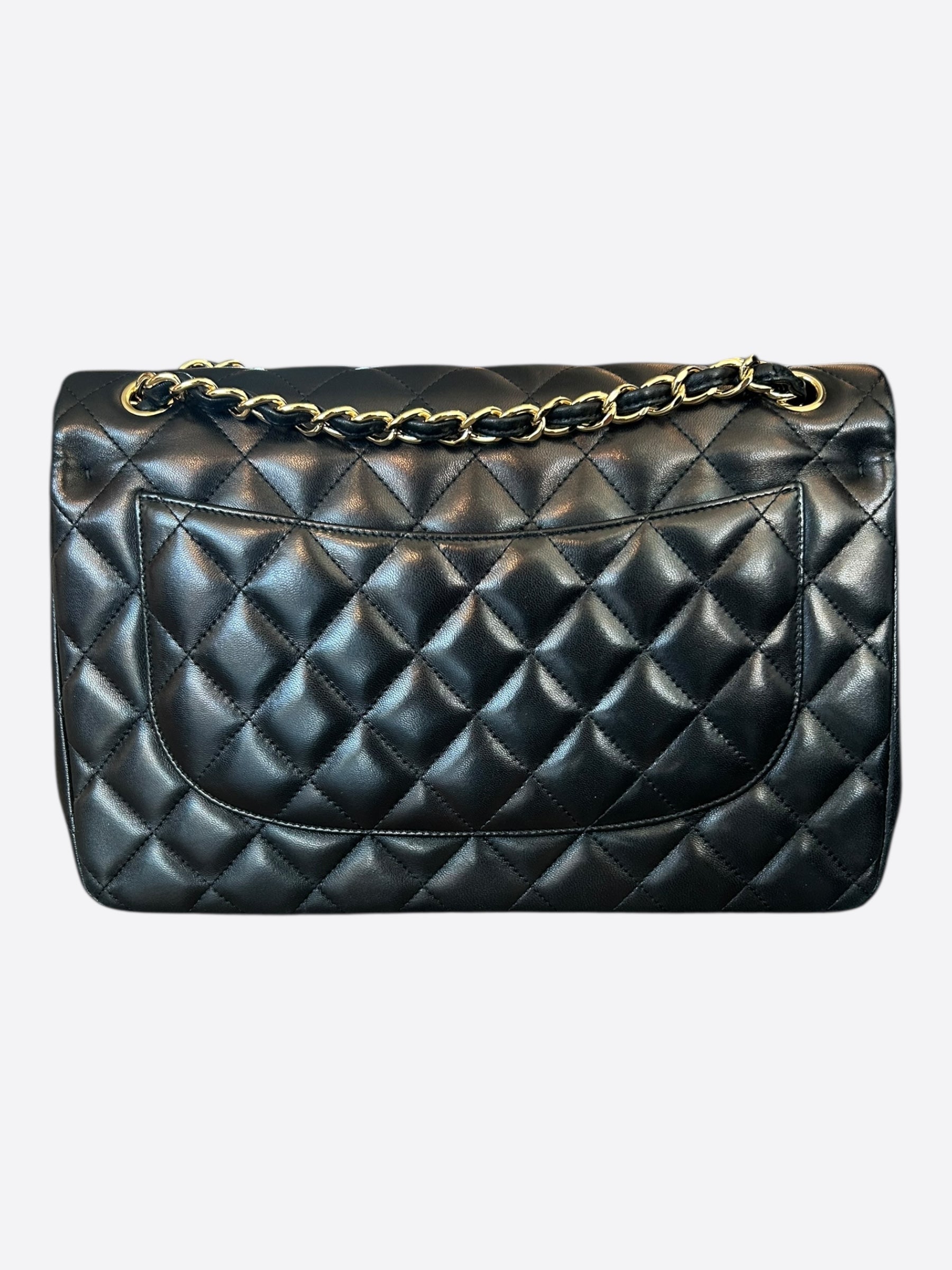 Chanel Black Lambskin Quilted Jumbo Flap Bag