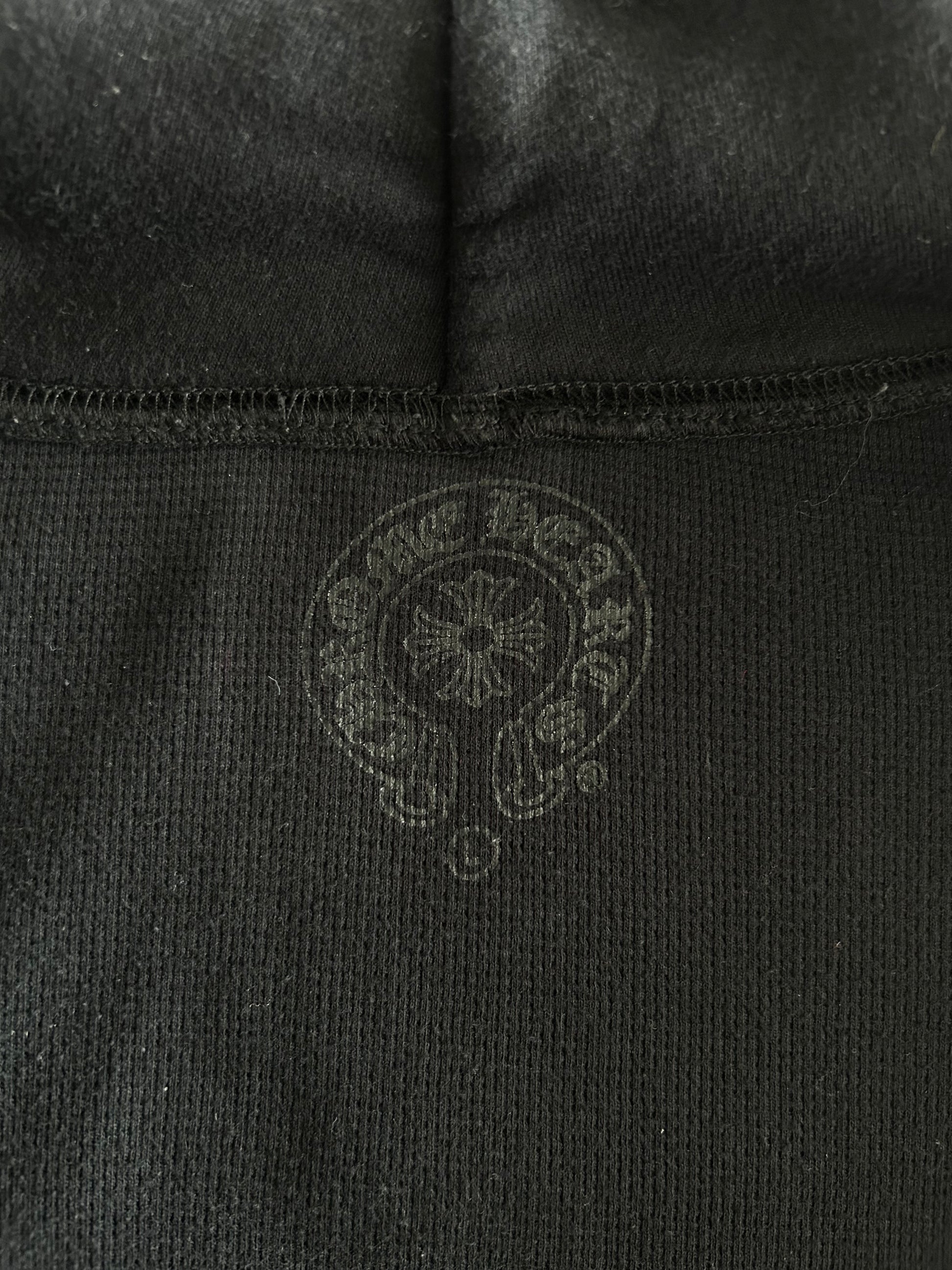 Chrome Hearts scroll logo on chest & back