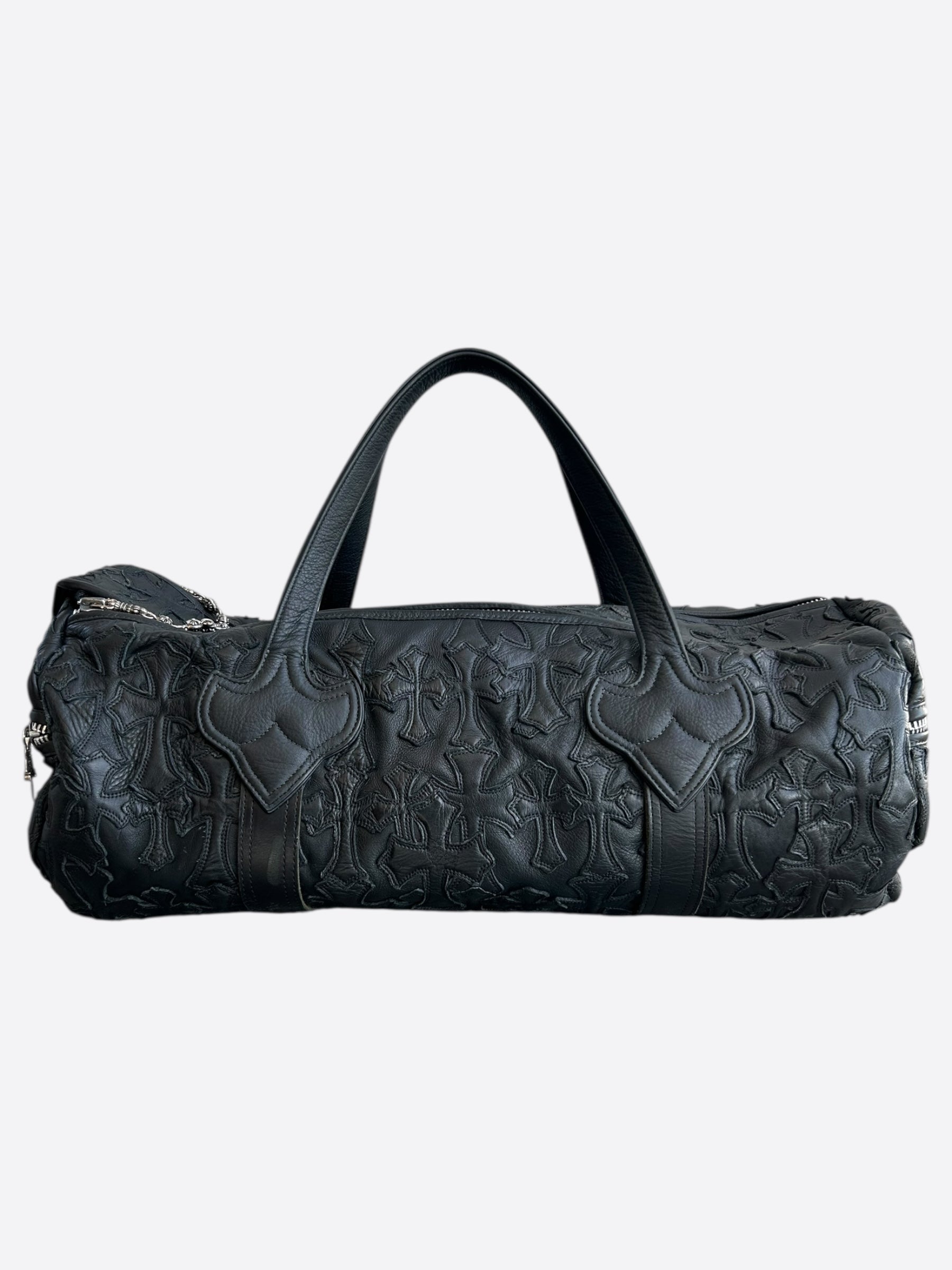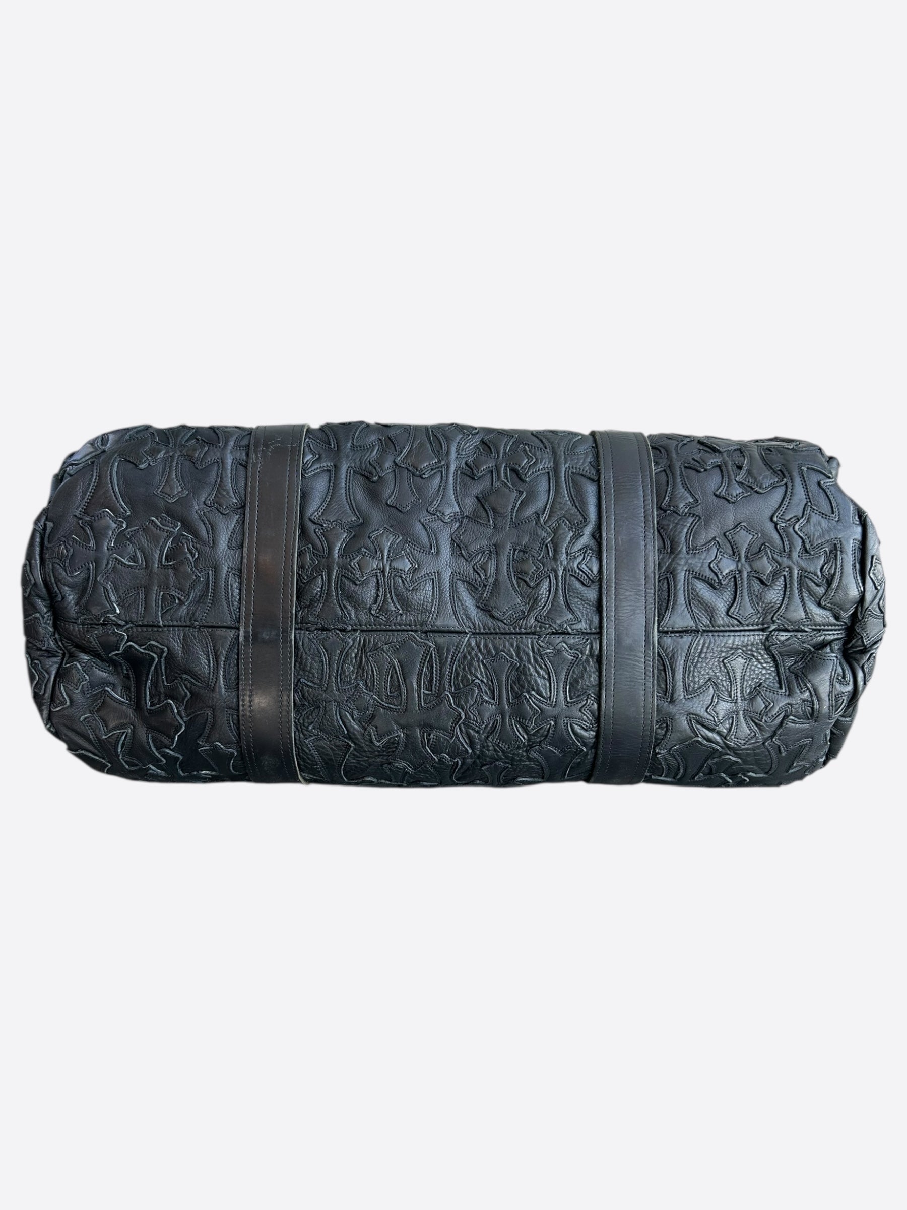 Chrome Hearts Black Leather Cross Patch Duffel Bag